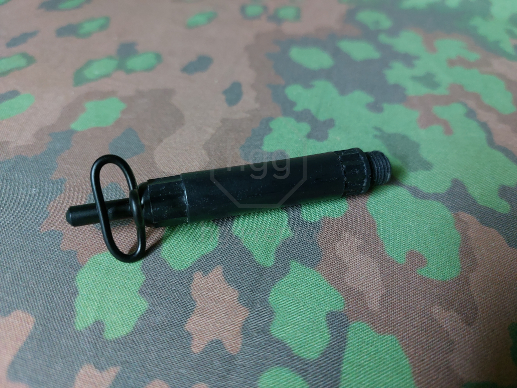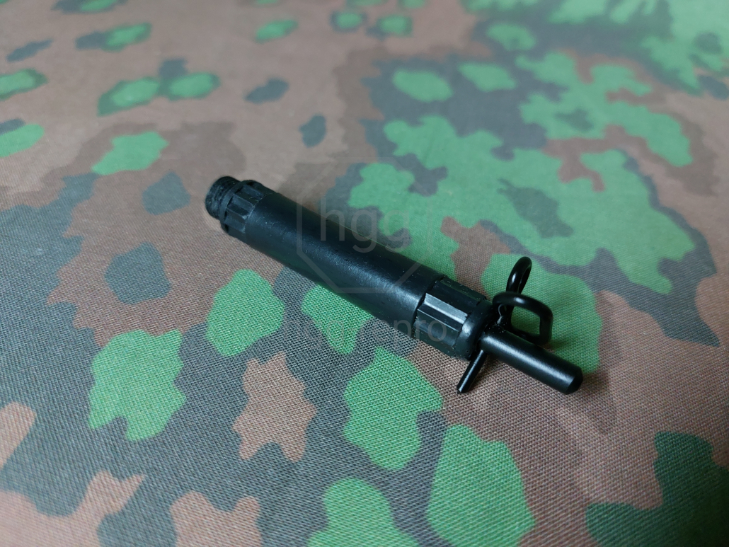 Detailgetreue Nachbildung des Zugzünder 42. Unsere Nachbildung besteht aus einem Kunststoffkörper (mit Kunsstoffgewinde) und einem eingesetzten Metallstab mit Draht-Vorstecker. Varianten mit angedeuteten Zink- und Bakelit-Sockel erhältlich. Auswahl erfolgt zufällig.