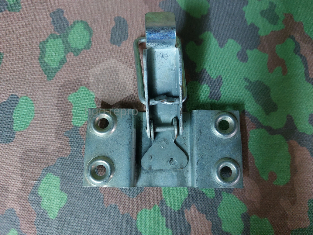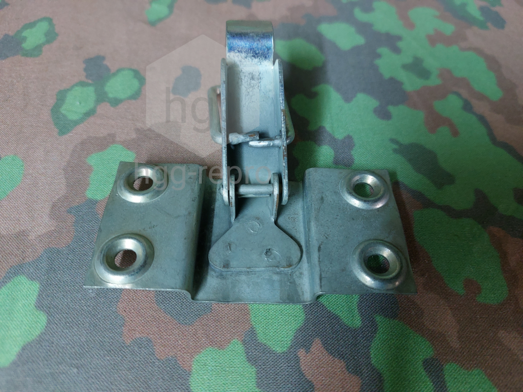 Bei dieser Variante des Kistenverschluss Nr. 4.1 handelt es sich um eine Erweiterung mit einem passenden Montageblech. Diese Verschlüsse stammen komplett aus dem Restbestand des originalen Herstellers, müssen etwas nachbearbeitet werden und wurden verzinkt. Ein paar Verschlüsse weisen leichte Mängel in der Ausrichtung auf, funktionieren aber dennoch.