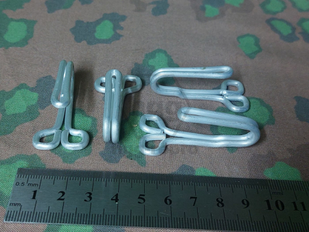 Restbestand der frühen Koppelhaken aus Aluminium. Set besteht aus 4 Stück, ausreichend für eine Feldbluse. Perfekt für Reenectment oder Historical Living.