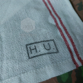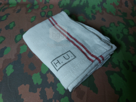 Hier erwerben sie ein Stück Leinenhandtuch (ca 45 x 60 cm) mit eingewebten roten Streifen (nicht aufgedruckt) und Heeresunterkunft-Stempel. Gehört in jeden Spind oder Brotbeutel. Perfekt für Reenactment und living History.