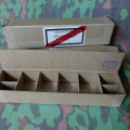 Sie erwerben eine Schachtel mit Inneneinteilung, verschlossen und mit einer Aufreißschnur und passendem Etikett versehen. Ohne Zünder oder Ladung. Perfekt zur Komplettierung einer vorhandenen Holzkiste.