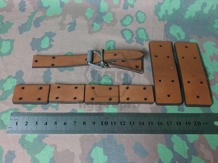 Bei diesem Set handelt es sich um ein Reparaturset aus dickem naturgegerbtem Leder und naturfarbenem Baumwollband für den Patronenkasten 88, wie er im zweiten Weltkrieg eingesetzt wurde. Das Set besteht hierbei aus